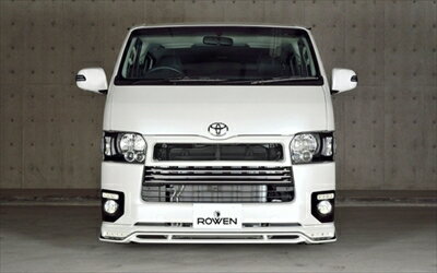 【ステッカープレゼント!!】ハイエース 200系 4型 標準ボディ フロントスポイラー LED(ホワイト)付 ABS製 塗分け塗装済 ホワイト(058)×ブラック 取付込メーカー:ロウエン |