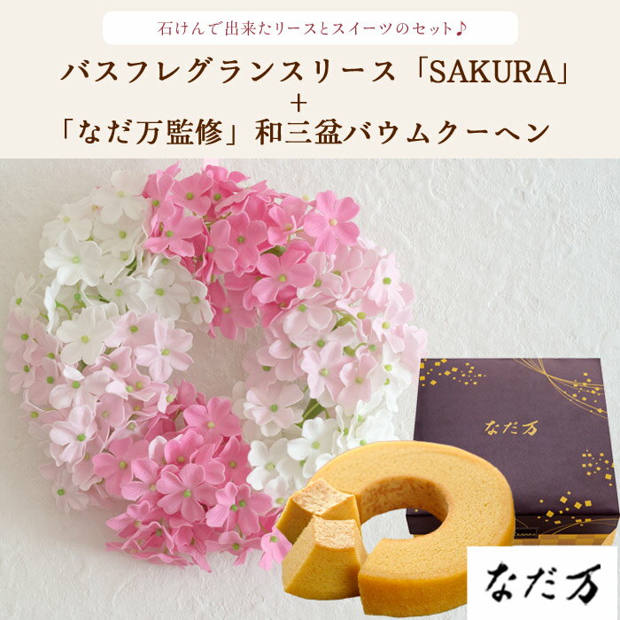 花とスイーツのセット バスフレグランスリース【SAKURA】+なだ万監修 和三盆バウムクーヘン 送料無料 あす楽 誕生日 記念日 お祝い スイーツ セット ソープフラワー 入浴剤 誕生花 母の日 父の日ギフト 花 FKTPHSW