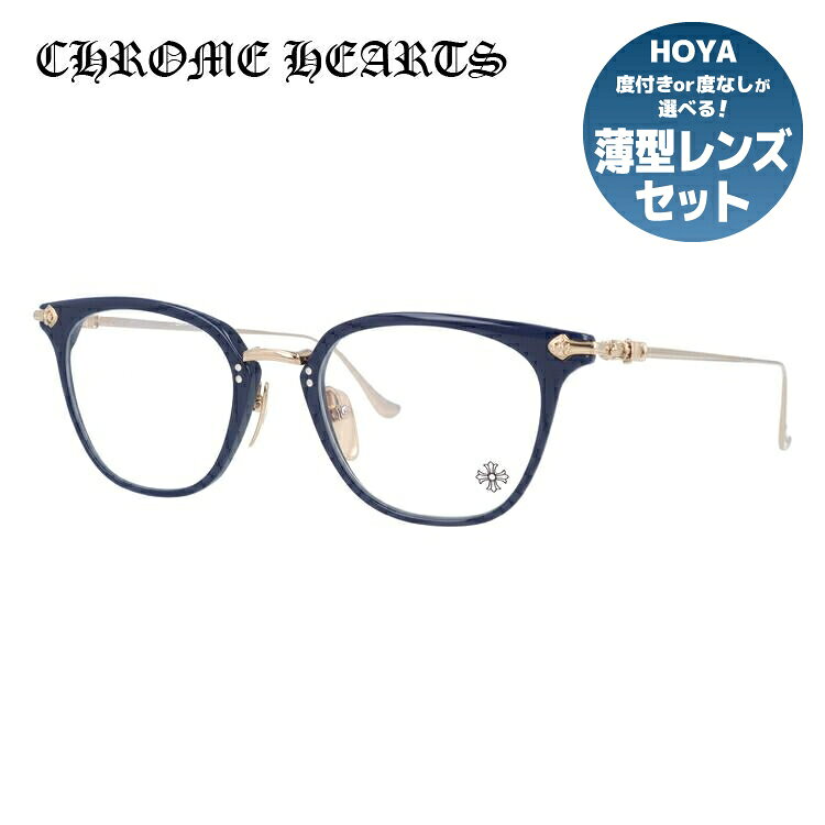 クロムハーツ メガネフレーム 【ボストン型】 おしゃれ老眼鏡 PC眼鏡 スマホめがね 伊達メガネ リーディンググラス 眼精疲労 Chrome Hearts 眼鏡 CHROME HEARTS DIG BIG BK/GP 45 メンズ レディース ハイブランド
