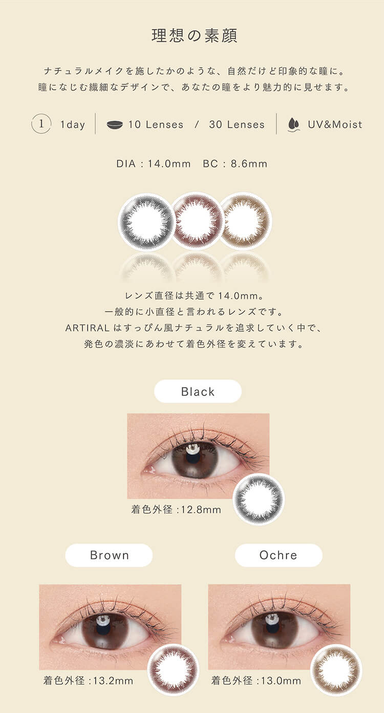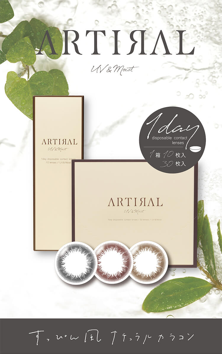 アーティラルUV&モイスト[artiral UV&MOIST] ●商品ポイント 瞳の健康と美しさの両立を目指したレンズデザインが人気のアーティラルシリーズ。