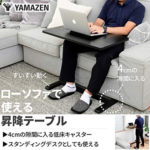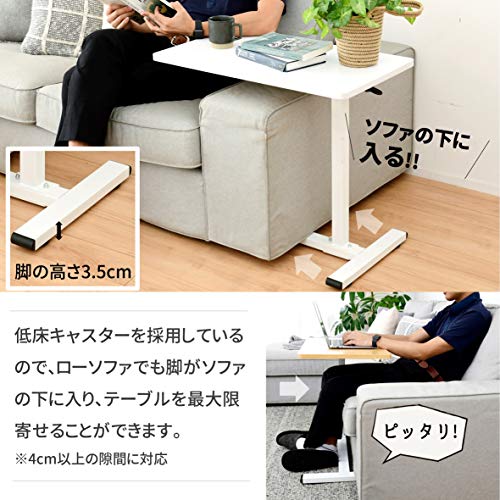 サイドテーブル 高さ60-95 4cmの隙間に入る低床キャスター ガス圧昇降 無段階高さ調節 幅70cm