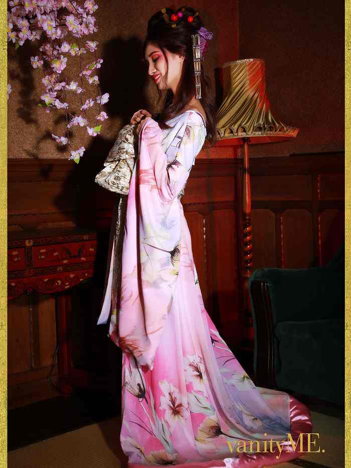 《モデル着用・オススメアイテム》 #花魁 RIBBON 黒×赤 #花魁 RIBBON 紫×赤 1分で着れる!! ベストセラー 大人気商品 たくさんのお声いただきました女の子らしいピンクが登場! 天女のような淡い可愛い着物ドレス帯は探し抜いた白に金糸の刺繍の帯! 後ろファスナーで簡単に自分で着てもらえます! 裾には本格的な遊女の風格を出す中綿入り! 他には絶対にないvanityME.完全オリジナル! ■帯の構造について 二枚の帯生地を縫い合わせており、両面表として使っていただける素材になっております。