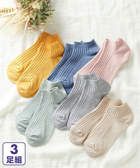 靴下 ソックス (22-24cm) カラーで選べる ショートソックス 3足組 ニッセン 女性 レディース 福袋 セット ショート丈 くるぶし丈 シンプル 無地